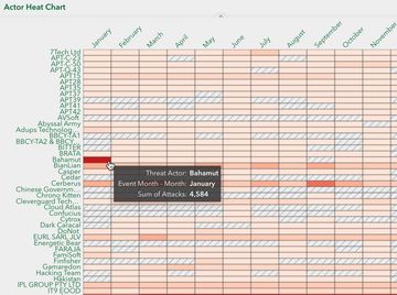 Monitor monthly attack volumes targeting countries.